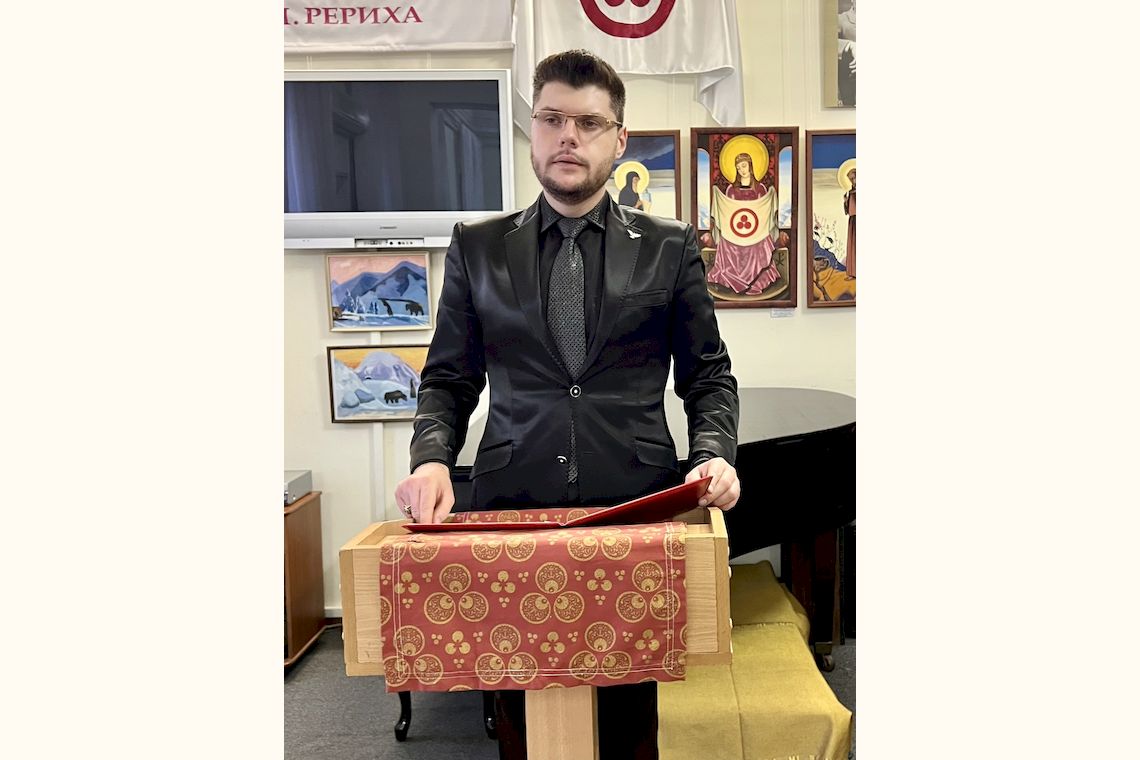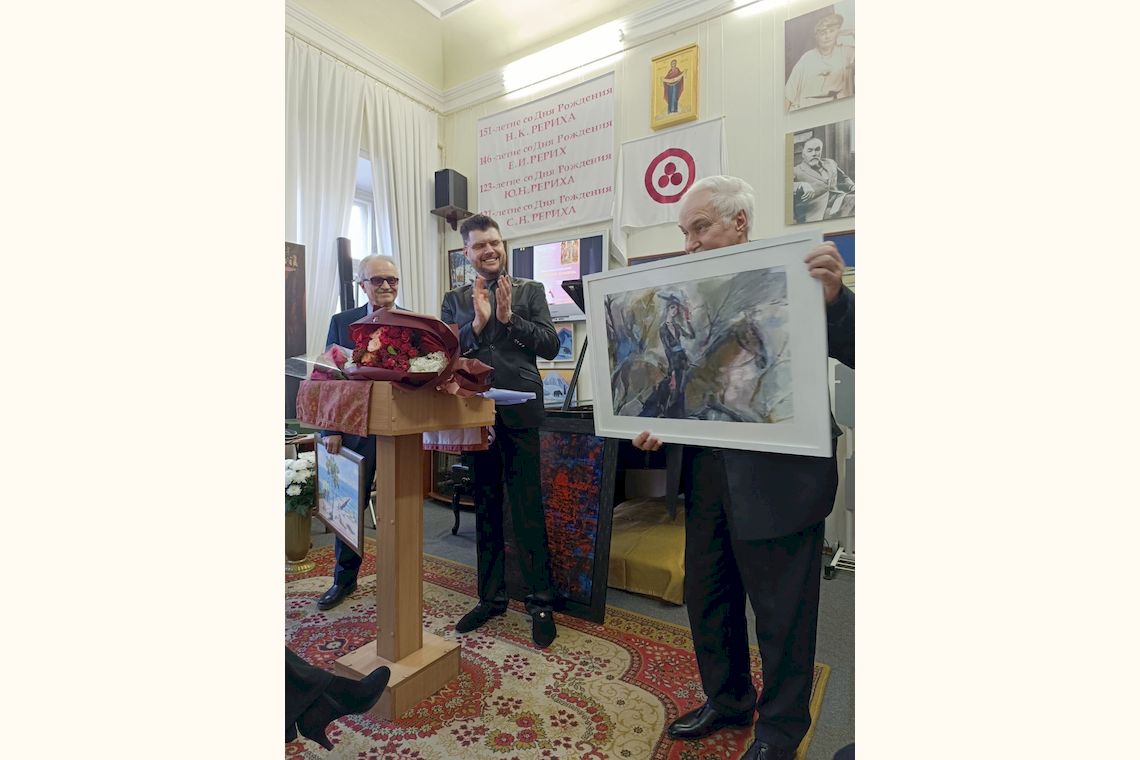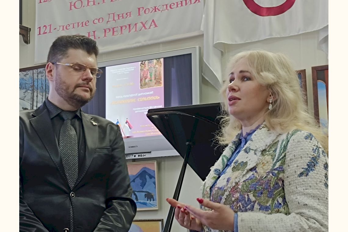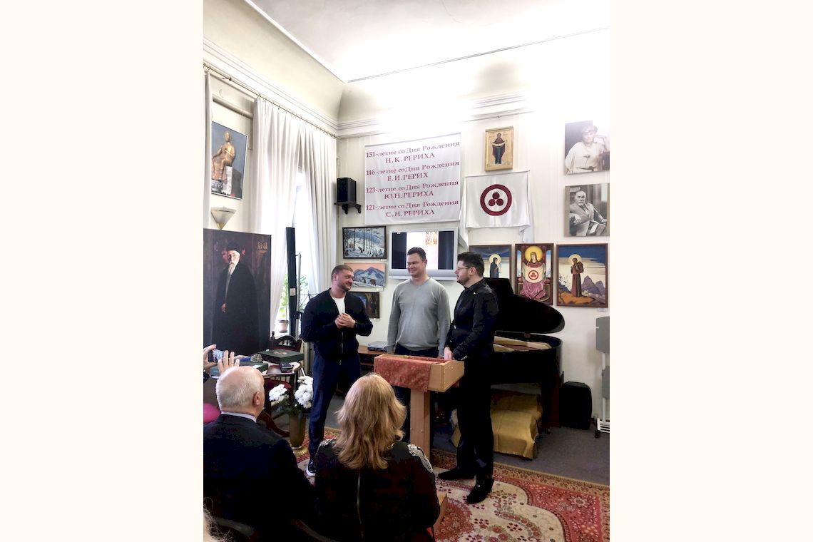 В свою чергу, помічниця директорки музею Марина Попова провела історичний екскурс, в якому висвітлила події столітньої давнини, коли всесвітньо відомий художник, миротворець, філософ і мандрівник Микола Костянтинович Реріх активно співпрацював з сербськими колегами і вів листування з тодішнім Королем Югославії Олександром I Карагеоргієвичем. Починаючи з 30-х років минулого століття і до останнього часу у Белградському художньому музеї експонувалися сім картин М.К. Реріха. Ці картини гості заходу змогли побачити на екрані.