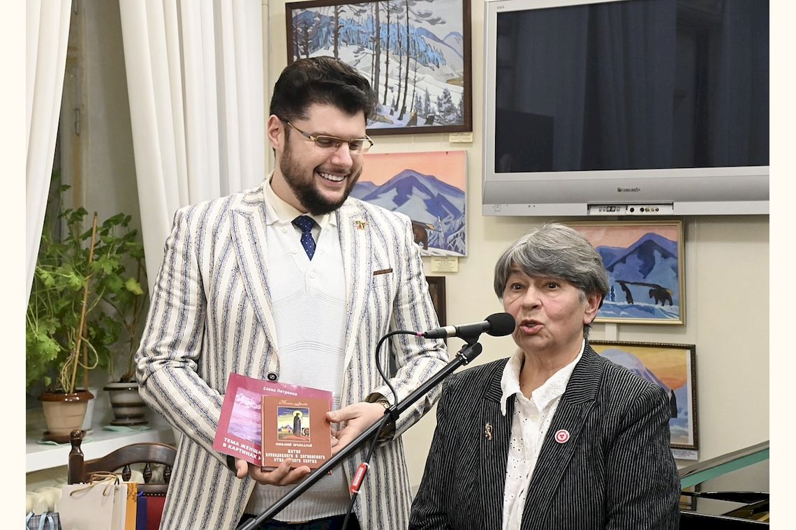 Много добрых слов было сказано и в адрес Музея, который сохраняет и популяризирует интеллектуальное наследие всемирно известного художника, мыслителя, миротворца и путешественника Н. К. Рериха. Елена Григорьевна Петренко представила несколько новых изданий, посвященных картинам и философским идеям Николая Константиновича.